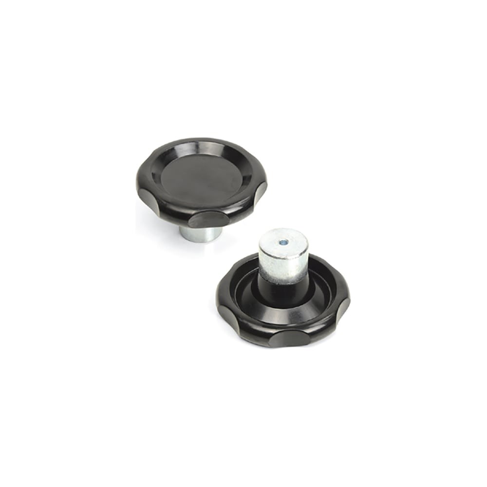 Материал:Бакелит.Исполнение:Цвет: черный матовый RAL 9005.Оцинкованная втулка.Устойчив к маслам, смазкам и растворителям.Температура эксплуатации: от -30 °C до +120 °C.Диаметр: 100 мм.