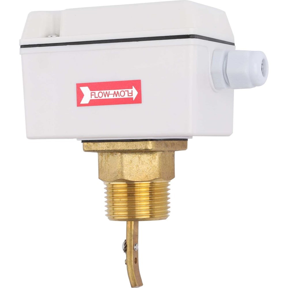 Реле потока FS-1R предназначено для контроля наличия потока в отопительных, охлаждающих и водоочистных установках, насосных системах, дозирующих устройствах и промышленных системах. В отопительных установках реле используется для отключения горелки при отсутствии или при нарушении циркуляции рабочей среды в установке. Отсутствие протока нарушает функционирование предохранительных и защитных устройств, зависящих от температуры. Реле имеет абсолютную защиту электрических компонентов от воздействия среды: электрические детали отделяет от жидкой среды металлический сильфон из высококачественной стали. Использование такой стали в конструкции многих деталей защищает прибор от коррозии. Электрический переключающий контакт позволяет выполнять включение/выключение любого из электрических устройств при достижении протоком параметров, при которых происходит срабатывание реле. Установка реле в трубопровод производится через муфту резьбой 1 дюйм, внутренняя резьба. Электрические контакты: 1 SPDT 220 VAC/ 10 А; 24 VDC Температура жидкости: от 0 до 120 оС Температура окружающей среды: от -20 до 100 оС Штуцер: латунь Присоединение к процессу: наружная 1 NPT Степень пылевлагозащиты: IP 55 Максимальное рабочее давление жидкости: 10.34 атмосфер Диапазон потока: от 18 до 2 000 литр/мин