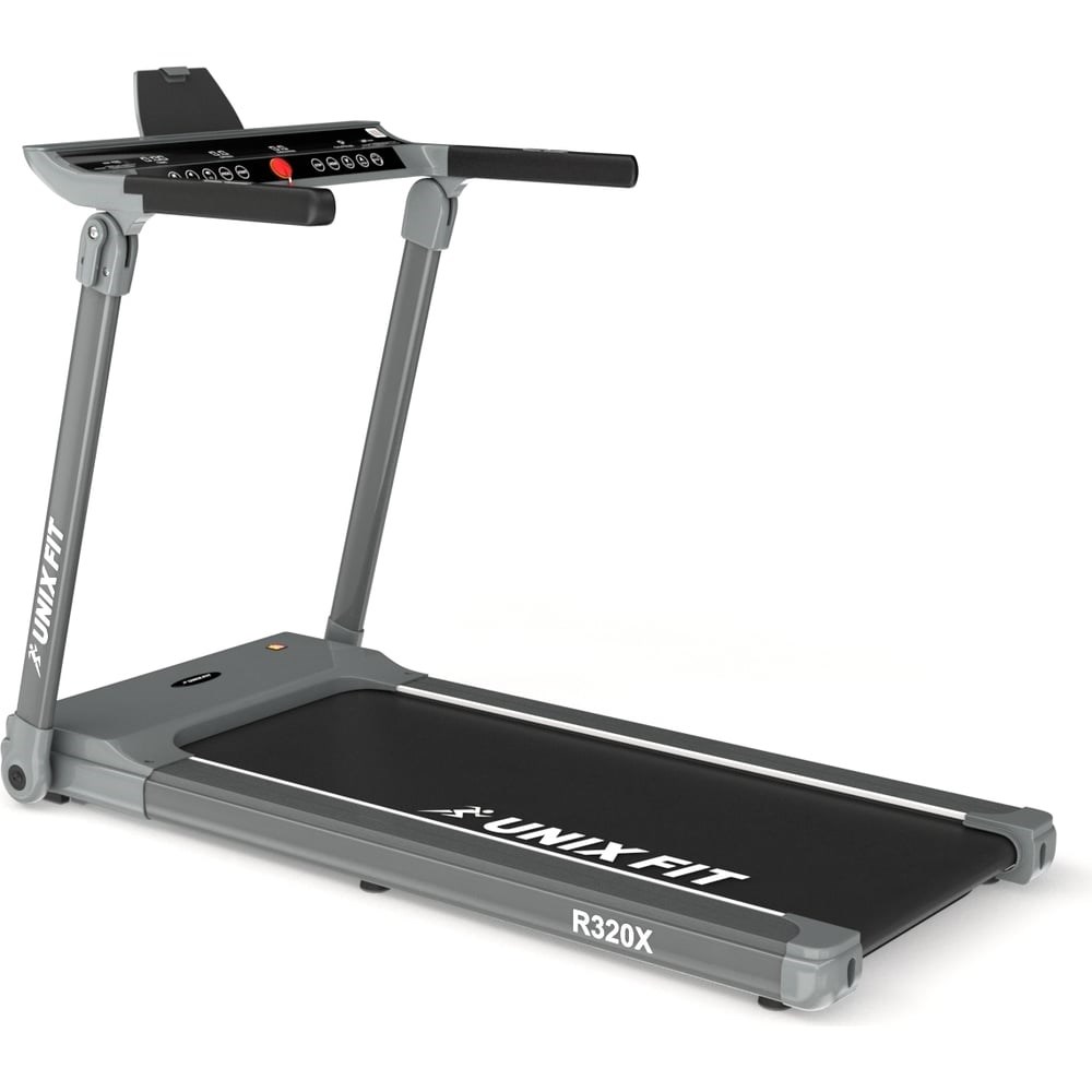 Беговая дорожка UNIXFIT R-320X является полноценным кардиотренажером для пользователей любого уровня подготовки. 8 эластомеров позволяют добиться высокого качества амортизации, снижая нагрузку на позвоночник и суставы. Усовершенствованная система складывания SlimFold позволяет убрать беговую дорожку под диван или поставить к стене (толщина рамы составляет всего 14 см). Беговое полотно обладает внушительными размерами (46х125 см), а максимальная скорость бега составляет 14 км/ч. Модель оснащена Bluetooth модулем с функцией управления беговой дорожкой через приложение ASP. Опция мультимедиа включает 2 встроенных динамика (3kW x 2) с возможностью подключения внешних устройств (USB, AUX).