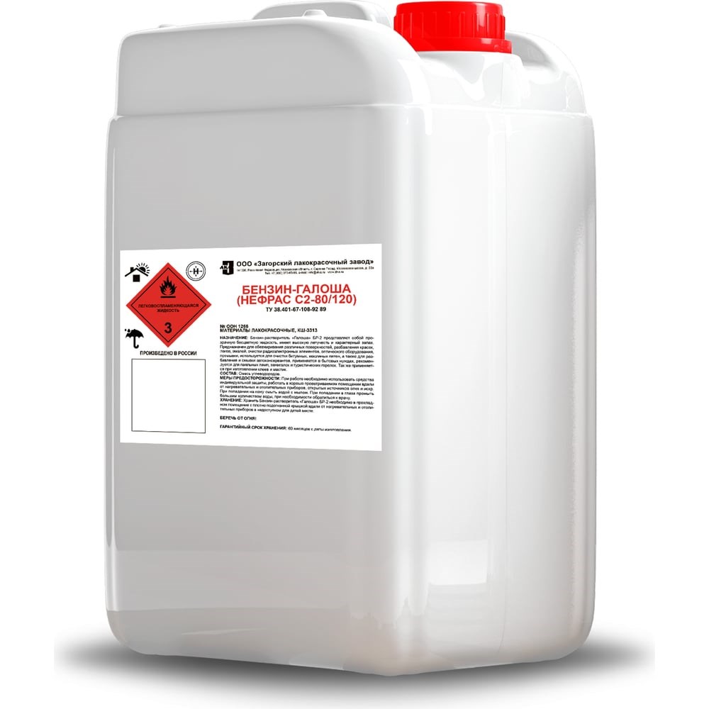 Бензин-растворитель "Галоша" нефрас ЗАГОРСКИЙ ЛАКОКРАСОЧНЫЙ ЗАВОД С2-80/120 10 л ZLK07341 представляет собой прозрачную бесцветную жидкость, имеет высокую летучесть и характерный запах. Предназначен для обезжиривания различных поверхностей, разбавления красок, лаков, эмалей, очистки радиоэлектронных элементов, оптического оборудования, промывки, используется для очистки битумных, масляных пятен, а также для разбавления и смывки автоконсервантов, применяется в бытовых нуждах, рекомендуется для паяльных ламп, зажигалок и туристических горелок. Так же применяется при изготовлении клеев и мастик.