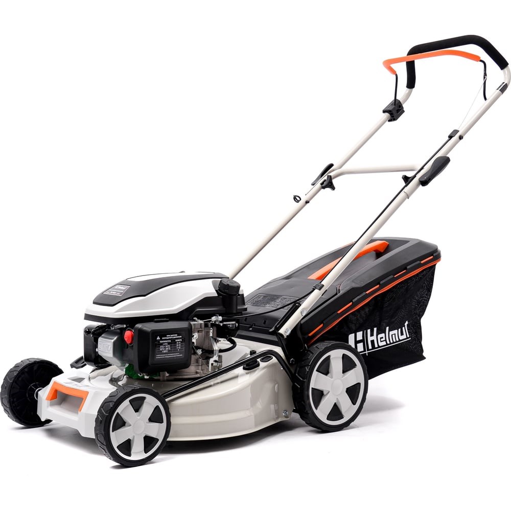 Газонокосилка бензиновая Helmut TR 46H – простая в использовании несамоходная газонокосилка, идеально подходящая для кошения травы на участках средней и большой площади. Прочная стальная дека с режущим ножом 46 см и надёжный 4-тактный двигатель с облегчённым запуском обеспечивают высокую производительность и длительный ресурс эксплуатации. Мягкие эргономичные, складные рукоятки снижают утомляемость при работе длительное время, центральная регулировка высоты кошения облегчает работу.В стандартной комплектации газонокосилка может использоваться либо в режиме выброса скошенной травы вбок, либо со сбором травы в травосборник. Нож специальной формы обеспечивает создание мощного воздушного потока и эффективный сбор скошенной травы, что придаёт газону красивый и ухоженный вид. Газонокосилка имеет функцию мульчирования и функцию самоочистки деки.