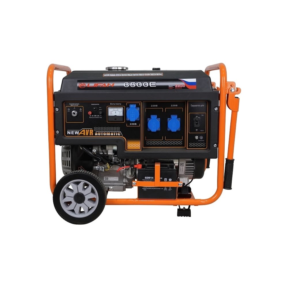 Бензиновый генератор LIFAN 6500E 5GF-4 220В, 5/5,5 кВт, 13 л.с. 00-00000220 вырабатывает стабильный однофазный электрический ток для питания бытовых приборов или строительной/ремонтной техники. Масляный щуп и индикатор топлива облегчают контроль за количеством необходимых технических жидкостей в системе. Модель оборудована бесконтактной системой зажигания и электрическим стартером. Одноцилиндровый двигатель отличается продолжительным сроком службы. Для удобства пользователя все необходимые элементы управления выведены на переднюю панель.