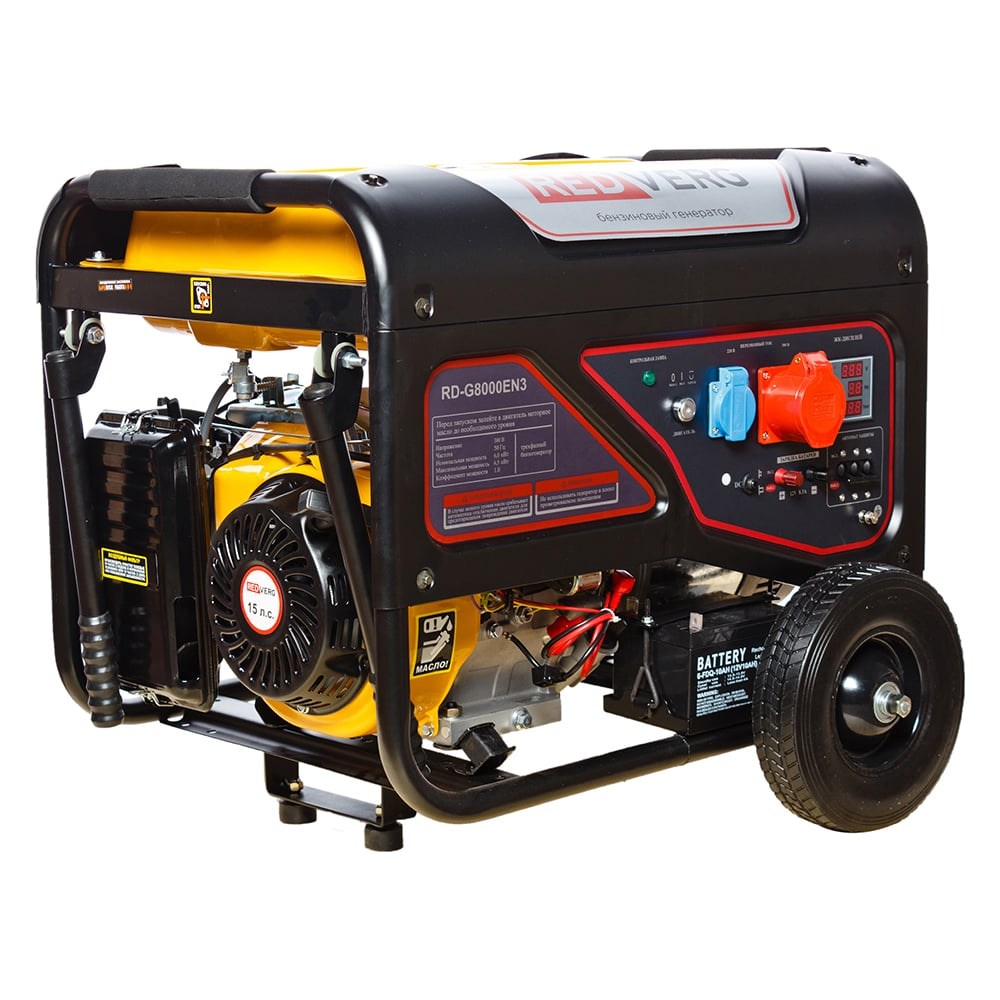Бензиновый генератор REDVERG RD-G8000EN3 5025411 предназначен для эксплуатации в качестве резервного источника питания на пикнике, на даче, в гараже, на рыбалке, на строительной площадке. Генератор оснащен 4-тактным двигателем мощностью 6.5 кВт. Имеется функция воздушного охлаждения.
