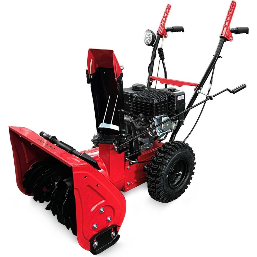 Самоходный бензиновый снегоуборщик STARWIND GST-4356L поможет оперативно очистить от снежного покрова придомовую территорию, автомобильную парковку, тротуары или дорожки. Снегоуборщик оснащен надежным 4-тактным бензиновым двигателем мощностью 7 л.с., что обеспечивает выброс снега на расстояние до 15 м. В конструкции двигателя предусмотрен праймер для быстрого и легкого запуска. Тип стартера – ручной. Модель GST-4356L имеет 2 рычага управления: для включения шнека и для включения привода на колеса. Для комфортной эксплуатации снегоуборщика предусмотрено 7 скоростей движения: 5 вперед и 2 назад. Ширина захвата снега – 56 см, высота захвата снега – 43 см. Благодаря поворотному желобу, вы можете регулировать поворот направления выброса снега до 190 градусов. А встроенный блок фары позволяет очищать участок от снега даже в темное время суток. Снегоуборочная машина STARWIND GST-4356L оснащена надувными колесами с продуманным протектором, позволяющим снегоуборщику не скользить на снеге и льду. Двухступенчатая система шнеков с металлическими лопастями легко измельчает даже слежавшийся и примерзший снег.