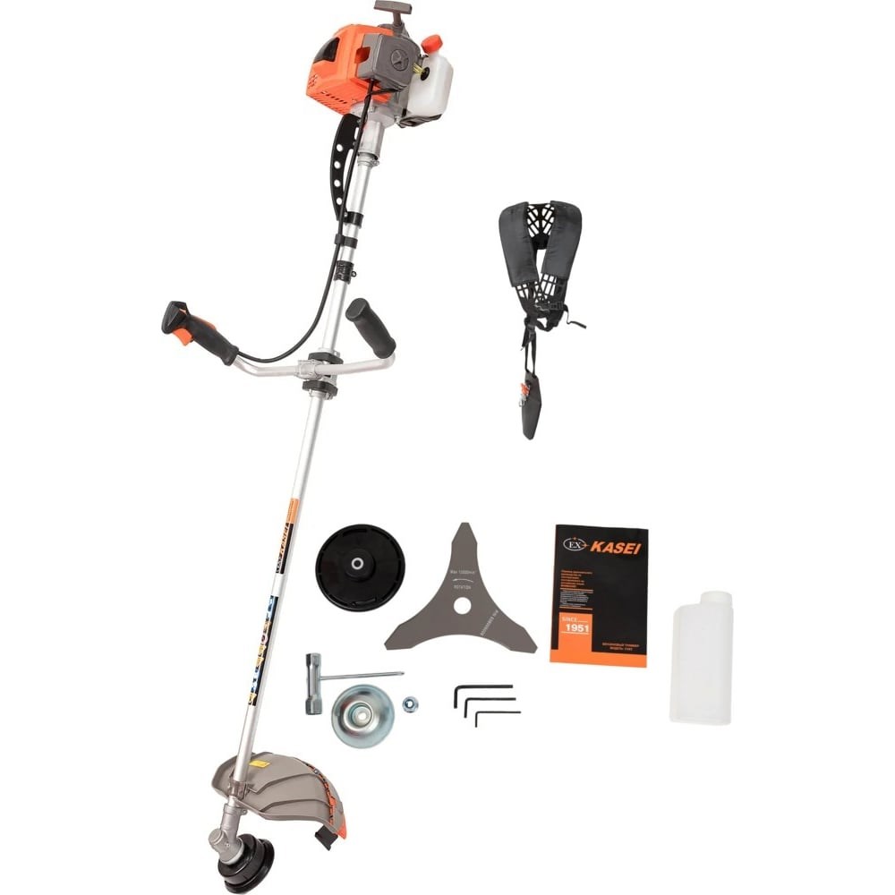 Бензиновый триммер Ex Kasei CG63 представляет собой инструмент, который идеально подходит для ухода за газонами и садовыми участками. Оснащенный мощным двухтактным двигателем объемом 63 см³, он обеспечивает высокую производительность и надежность в работе. Верхнее расположение двигателя способствует удобству эксплуатации и снижению вибрации. Прямой приводной вал гарантирует эффективную передачу мощности, а U-образная велосипедная ручка обеспечивает комфортное управление. Режущие элементы в виде лески и диска позволяют адаптировать триммер под различные задачи. Емкость топливного бака составляет 0.75 литра, что обеспечивает продолжительное время работы без дозаправки. Уровень звукового давления в 100,2 дБ соответствует стандартам, что делает использование триммера более комфортным для оператора.