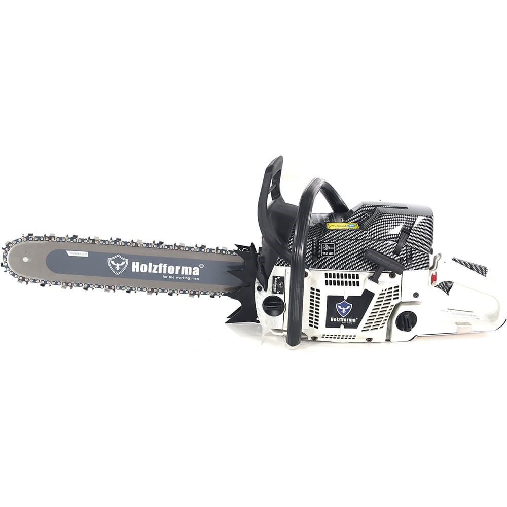 Бензопила Holzfforma G372XP Pro 18" предназначена для работы в экстремальных условиях и при низкой температуре. Благодаря инновационным технологиям имеет низкий расход топлива. Пила оснащена антивибрационной системой Holzfforma AVS PRO, которая позволяет снизить вибрационную нагрузку на руки оператора. Имеется быстросъемная крышка воздушного фильтра и имеет систему дополнительной очисти воздуха Holzfforma Clean Air, благодаря которой воздушный фильтр остается чистым долгое время, что очень удобно при профессиональном использовании. Максимальная мощность бензопилы Holzfforma G372XP Pro 18"- 3,9 кВт (5,3 л.с.). В конструкции пилы использован магниево-алюминиевый сплав картера, кованный коленчатый вал, состоящий из трех частей. На пиле установлен металлический регулируемый маслонасос, который позволяет увеличивать или уменьшать подачу масла, в зависимости от ситуации. Инерционный тормоз Holzfforma SpeedStop предназначен для моментальной остановки цепи. Регулировка натяжения цепи производится винтом, через отверстие в крышке ведущей цепной звёздочки. Профессиональная конструкция бензопилы Holzfforma G372XP Pro 18" позволяет использовать шины длинной от 38 до 70 см. Бензопила Holzfforma G372XP Pro 18"может применяться как для заготовки и валки леса, так и для распиловки большого диаметра бревен и идеально подходит для профессионального применения. Все детали бензопилы Holzfforma G372XP Pro 18"совместимы с бензопилой Husqvarna 372 XP.