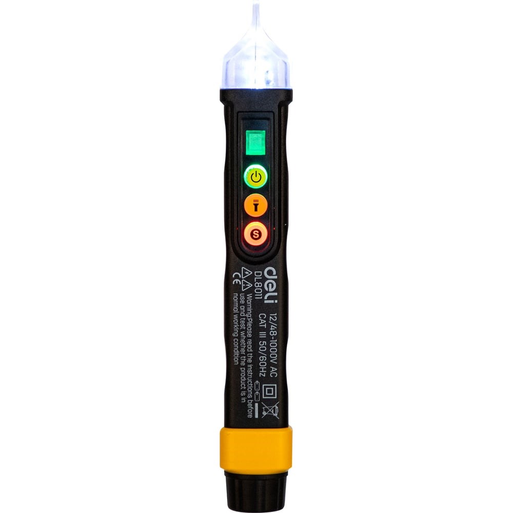 Бесконтактный детектор напряжения DELI DL8011 102975 используется для обнаружения напряжения переменного тока. Оснащен регулировкой режимов чувствительности. Тестер выполнен в компактном корпусе в виде ручки. Максимальный предел чувствительности - 1000 В. Оснащён цветовым индикатором уровня напряжения - красный (высокий), жёлтый (средний) и зелёный (низкий). Отлично подходит для работы в темных помещениях. Для этого используется светодиодная подсветка.