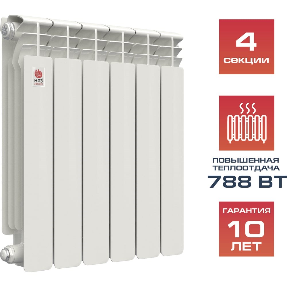 Биметаллические радиаторы «НРЗ» содержат стальной закладной элемент - вертикальный трубопроводи 2 горизонтальных трубопровода, которые формируются вместе с корпусом из алюминиевого сплава в процессе литья под давлением. Рекомендованы к установке в квартире.Главное отличие радиаторов НРЗ – полностью замкнутый цикл производства и подтверждение заявленного уровня теплоотдачи реальными испытаниями в аккредитованных лабораториях.Радиаторы «НРЗ» выполнены из высокопрочного алюминиевого сплава АК12М2 (100% российского сырья) по ГОСТ 1583-93 на автоматизированных комплексах “BUHLER” (Швейцария) и YIZUMI (Китай). Высокое содержание кремния (12%) в сплаве обеспечивает лучшие прочностные характеристики. За счет полноценных боковых рёбер радиаторы «НРЗ» обеспечивают более эффективную конвекцию.Механическая обработка и сборка радиаторов НРЗ производится на автоматизированных линиях «Gi-Zeta» (Италия) и “SAIP” (Италия). Соединение секций осуществляется с помощью ниппелей. В качестве межсекционных уплотнителей используются кольцевые прокладки, армированные кевларовым волокном.Технология покраски с использованием автоматизированной линии анафорезной и порошковой окраски «Ideal-Line” (Дания) включает химическое обезжиривание и пассивацию, антикоррозийную обработку.Каждый радиатор дважды проходит гидравлическое испытание под давлением в 1.5 раза превышающим максимальное рабочее.