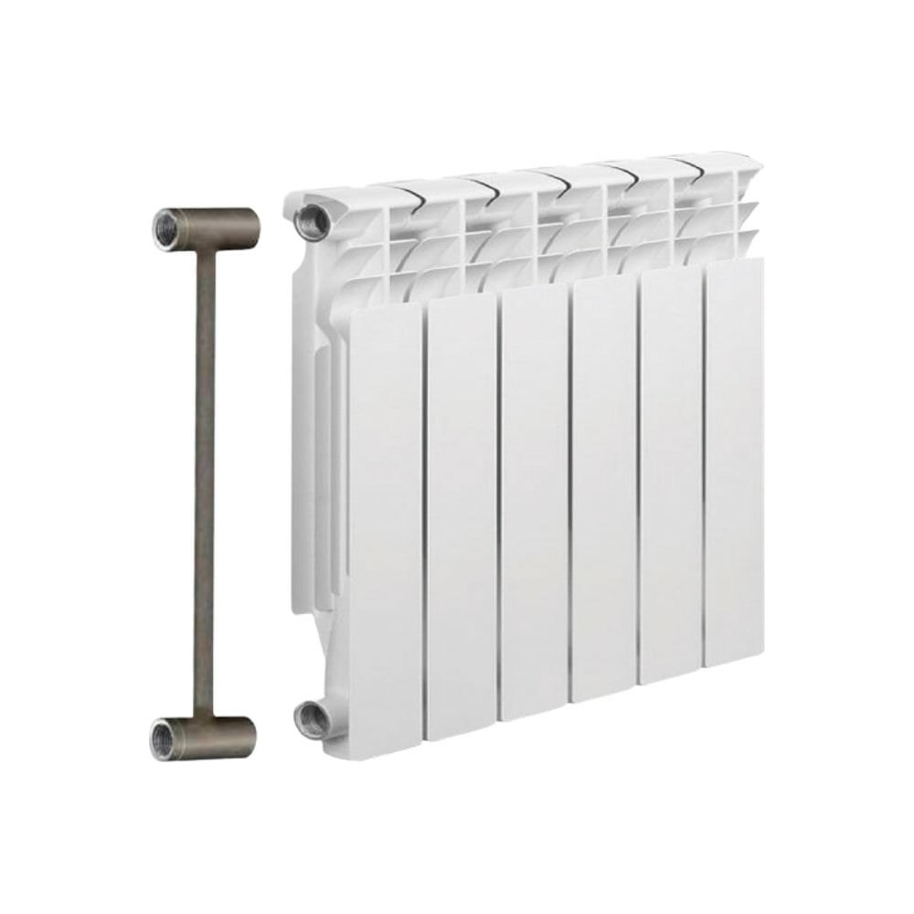 Биметаллический радиатор отопления Solur PRESTIGE 6 секций BMET06 классического белого цвета. Вставка для радиатора изготовлена из специальной бесшовной устойчивой к коррозии стали, гарантия надежности. Благодаря вставке радиатор выдерживает высокое давление воздуха и сильные гидравлические толчки. Хорошие показатели теплоотдачи достигаются за счет внешнего корпуса из алюминия, который имеет высокую теплопроводность. Внутренние трубы выполнены из стали, которая, в отличие от других металлов, практически не реагирует на щелочную среду.
