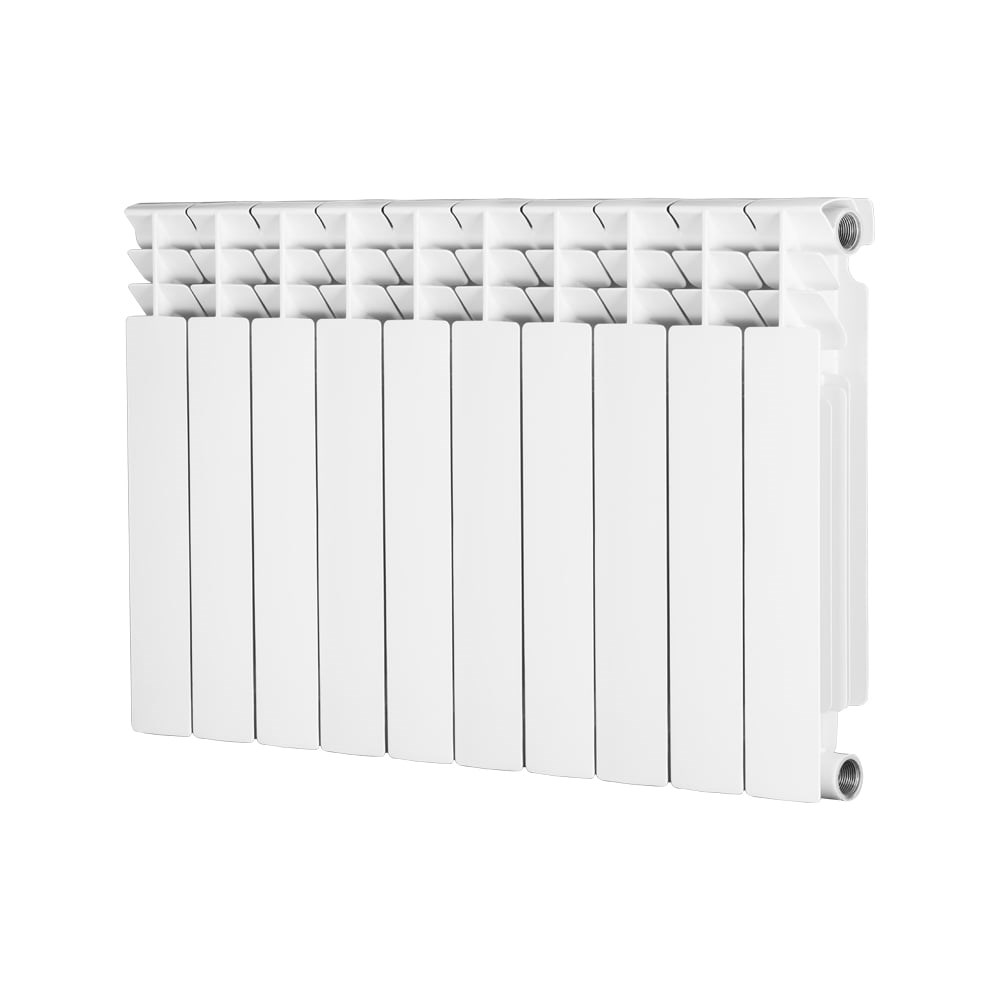 Серия CS 500/100 Радиаторы RADENA bimetall — секционные, полнобиметаллические радиаторы, разработаные в Италии в соответствии с европейскими стандартами и с учетом особенностей российских систем отопления. Радиаторы сертифицированы и отвечают всем европейским и российским нормам. Биметаллические радиаторы RADENA предназначены для применения в системах отопления жилых, общественных и промышленных зданий. Изготовлены в соответствии с ГОСТ 31311–2005. Биметаллический радиатор состоит из секций, соединенных с помощью стальных ниппелей и паронитовых (безасбетовых) прокладок, обеспечивающих герметичность соединений при температуре теплоносителя +120 °С. Внутренняя часть секции радиатора (коллектор) состоит из вертикальной и горизонтальной стальных труб, соединенных с высокой точностью автоматической сваркой в среде аргона. Коллектор биметаллического радиатора заключен в оболочку из высокопрочного алюминиевого сплава методом литья под давлением. Оптимальное оребрение секции радиатора позволяют достичь высоких показателей теплоотдачи, уменьшают инертность прибора. Радиатор окрашен в несколько слоев эпоксидным полиэстером методом анафореза и электростатического напыления порошковой эмали. Базовый цвет радиатора – белый RAL 9016.