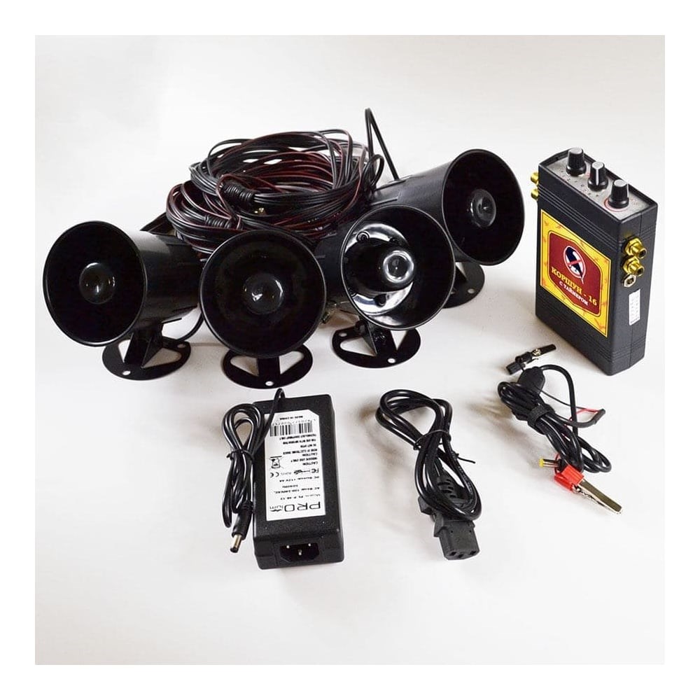 Биоакустический отпугиватель птиц Коршун 16 от чаек и бакланов 19 применяется на пасеках для защиты пчёл, в садах и огородах для защиты урожая, виноградниках, животноводческих фермах, сельскохозяйственных угодьях, на зерноперерабатывающих предприятиях, а также на складах и различных объектах, где нужно избавиться от птиц гуманным способом. Наборы голосов: Микс 1 (от чаек, крачек и бакланов + от ворон, грачей, галок, соек, воронов); Микс 2 (от чаек, крачек и бакланов + от ворон, грачей, галок, соек, воронов); Микс от чаек, крачек и бакланов; Микс от ворон, грачей, галок, соек, воронов и других врановых. Эффективно охраняемая площадь - до 16 гектар (1600 соток). Варианты питания отпугивателя: 1) Сетевой адаптер 220В (в комплекте поставки) 2) Аккумуляторная батарея 12В (автомобильная) (НЕ входит в комплект поставки) Рекомендации по монтажу: 1. Расположите блок управления прибора в месте, защищённом от прямого попадания дождя, не закрывая при этом фотоэлемент от естественного освещения; 2. Закрепите динамики на шесте в центре участка на максимальной для вас высоте и сориентируйте их направление в разные стороны; 3. При установке динамиков необходимо учитывать их направленность, т.к. наибольшая дальность действия будет непосредственно перед ними.