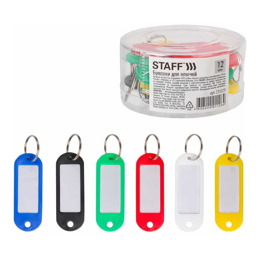 Бирки для ключей STAFF Basic комплект 12 шт, длина 58 мм, инфо-окно 35х15 мм, ассорти 231029 предназначены для идентификации ключей от разных помещений. Вкладыши для маркировки имеют прозрачную вставку, благодаря чему защищены от повреждений. За счет наличия металлических колец прослужат долгое время. Бирки изготовлены из пластика, поэтому отличаются эластичностью и прочностью.