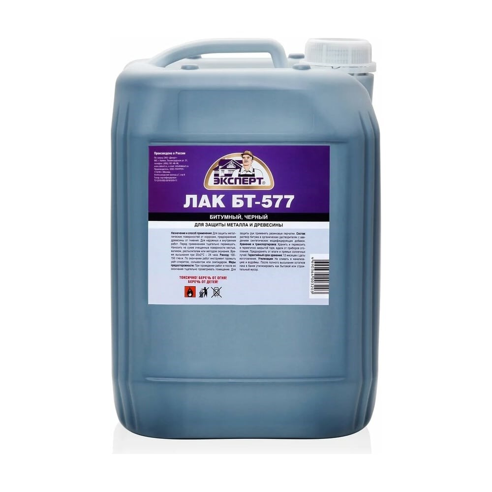 Битумный лак ЭКСПЕРТ БТ-577 10 л 18228 применяется для защиты металлических поверхностей от коррозии при хранении и транспортировке, для изготовления алюминиевой краски, а также для предохранения древесины от гниения снаружи и внутри помещений.