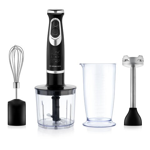 Блендер погружной BRAYER BR1240, 800 Вт, 2 скорости, 3 насадки, стакан, черный
