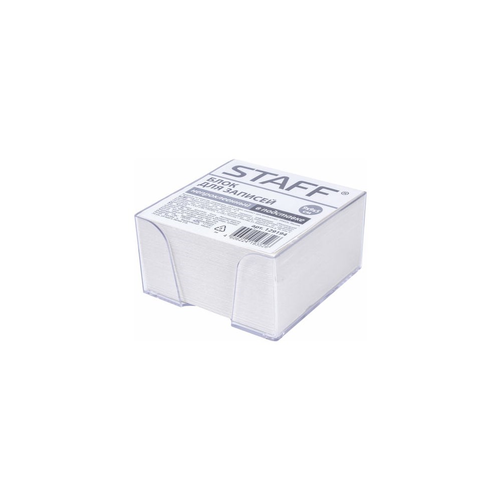 Блок для записей STAFF в прозрачной подставке, куб 9х9х5 см, белый, белизна 70-80% 129194 предназначен для быстрой фиксации информации. Может быть размещен в любом месте, что позволяет не забывать важную информацию. Подставка эргономичной формы обеспечивает легкий доступ к листам. Блок выполнен из плотной бумаги, поэтому подходит для письма любыми ручками и карандашами.