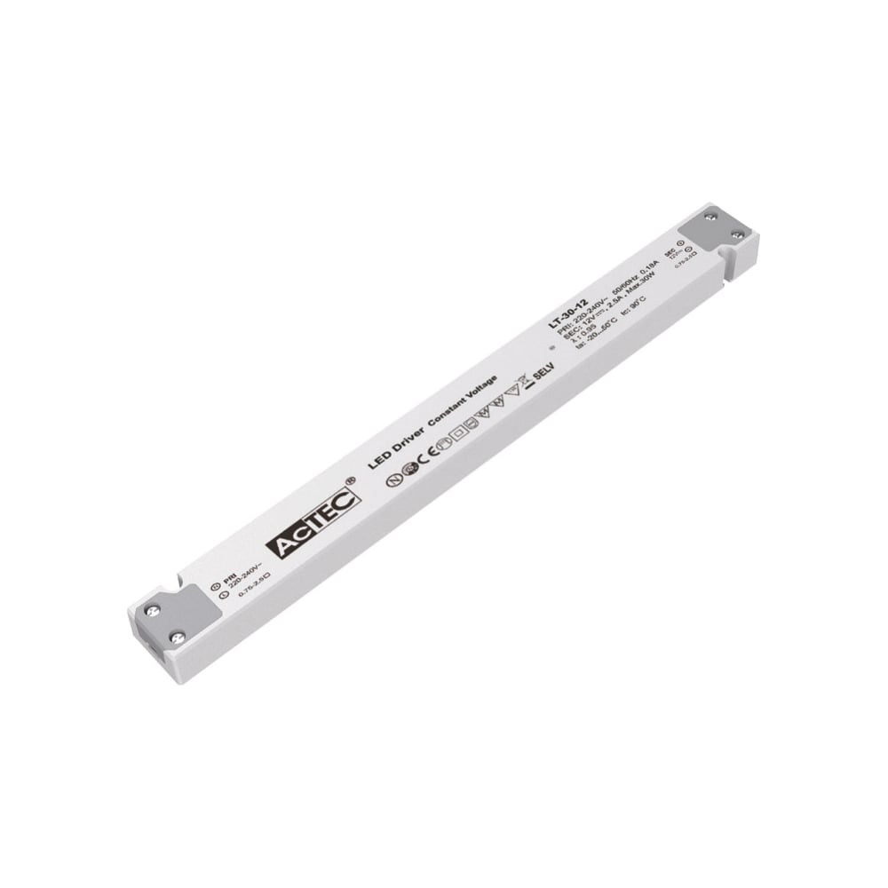 Блок питания 12В, 132Вт, IP20, 11А, 335x30x21.6мм AcTEC LT-150-12 предназначен для питания светодиодных осветительных приборов и других устройств. LT-150-12 имеет степень пылевлагозащиты IP20, поэтому рекомендуется его устанавливать в сухих, хорошо проветриваемых помещениях. Для обеспечения долгосрочной и стабильной работы устройства рекомендуем при выборе блока питания предусматривать запас по мощности примерно в 20%. Важно! Блоки питания необходимо размещать в местах с хорошей вентиляцией. При размещении в закрытых конструкциях необходимо выдерживать расстояние не менее 5 см друг от друга и от стенок конструкции.