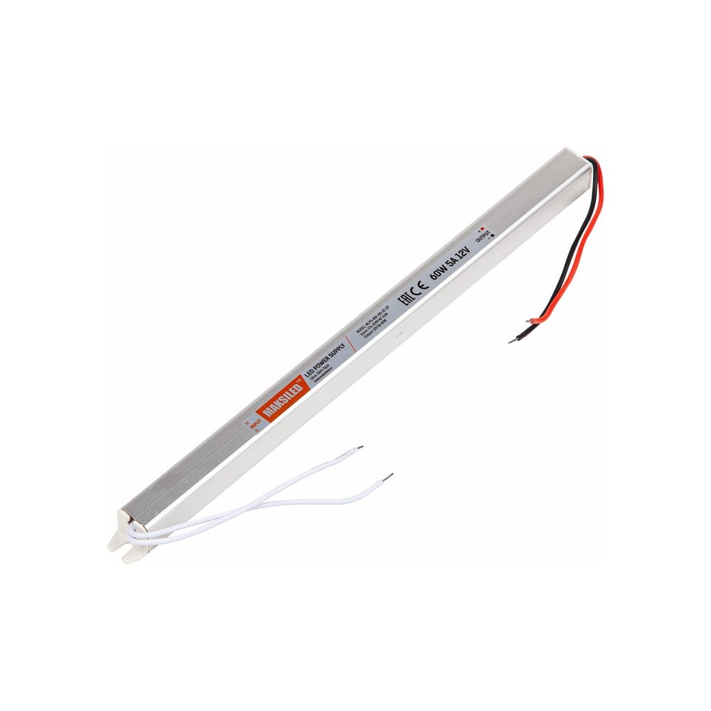 Блок питания MAKSILED 12В, 60Вт, IP20, 5A, 313x18x18мм, металл MLPS-NW-60-12-UT преобразует напряжение сети 220 В до постоянного выходного напряжения 12 В. Входное напряжение 170-250 VAC. Выходные параметры: 12 В, 5 А, 60 Вт. При выборе блока питания рекомендуется предусматривать 20% запаса мощности, что позволит сохранить работоспособность гораздо дольше.