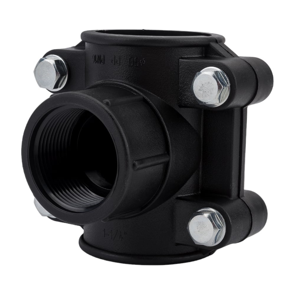Болтовая седелка VALFEX ПНД 50-1 1/4"121001550114 предназначена для отвода второстепенной трубы от основной магистрали в полиэтиленовом водопроводе. Применяется на трубопроводах холодного водоснабжения с температурой не более 40°С. Седелки болтовые хорошо зарекомендовали себя, как элементы быстрой врезки, а также как герметичные резьбовые отводы, без разрезания трубы.