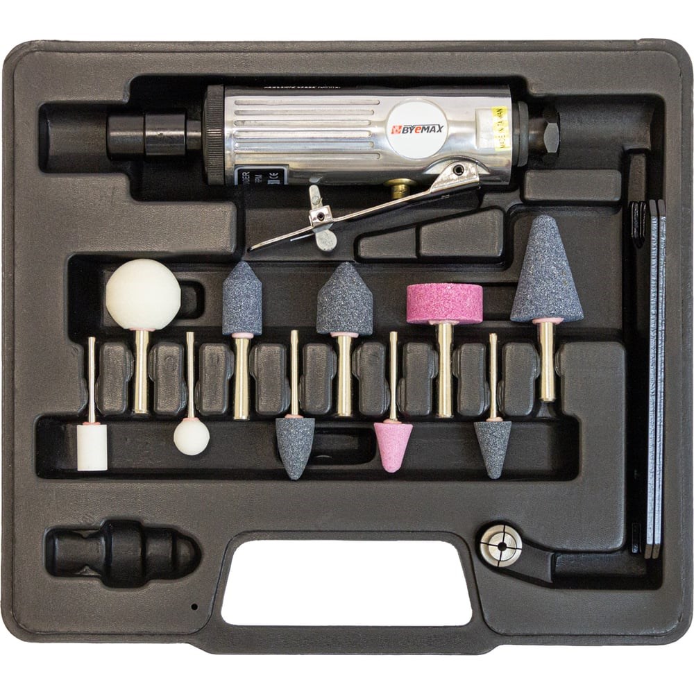 Прямая пневматическая бормашинка ByeMax BM-532K поставляется в пластиковом кейсе. Она имеет частоту вращения 25 000 оборотов в минуту и оснащена цангой диаметром 6 мм. Запуск осуществляется клавишей без предохранителя, а отработанный воздух выходит сзади. Этот инструмент отлично подходит для различных работ по зачистке, шлифовке и доводке поверхностей. Бормашинки из простой и надежной серии изготовлены из металла и включают в себя угловые, прямые и прямые удлиненные модели разной длины.