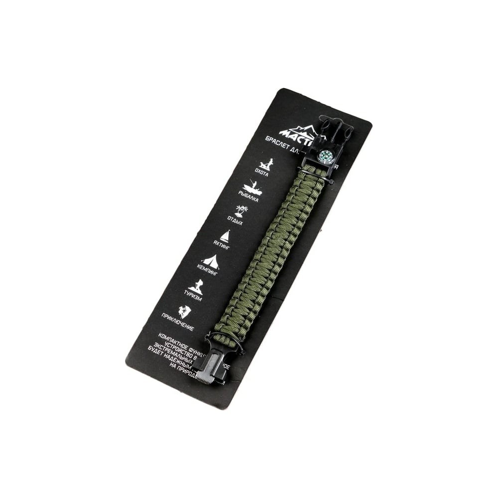 Браслет для выживания Мастер К 4в1, 25.5х2.5 см, тёмно-зелёный 2714827 подходит для рыбалки, охоты, кемпинга и туризма. Браслет можно использовать в качестве жгута для оказания первой медицинской помощи, а также для починки оборудования. Предусмотрены свисток для привлечения внимания, огниво для разведения костра и компас для навигации на местности. Удобство использования. Выполнен из текстиля, благодаря чему имеет небольшой вес и не будет натирать руку.