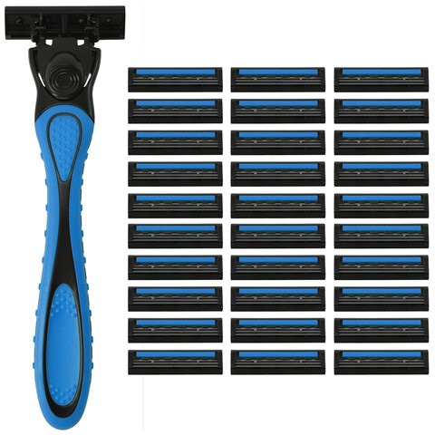Бритвенный станок многоразовый мужской, 3 лезвия, 31 кассета, синий, X-ONE, 700024