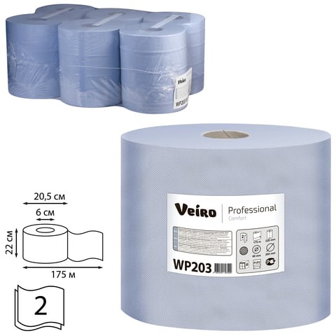 Бумага протирочная с центральной вытяжкой 175 метров VEIRO (M4) COMFORT, 2-слойная, КОМПЛЕКТ 6 рулонов, WP203