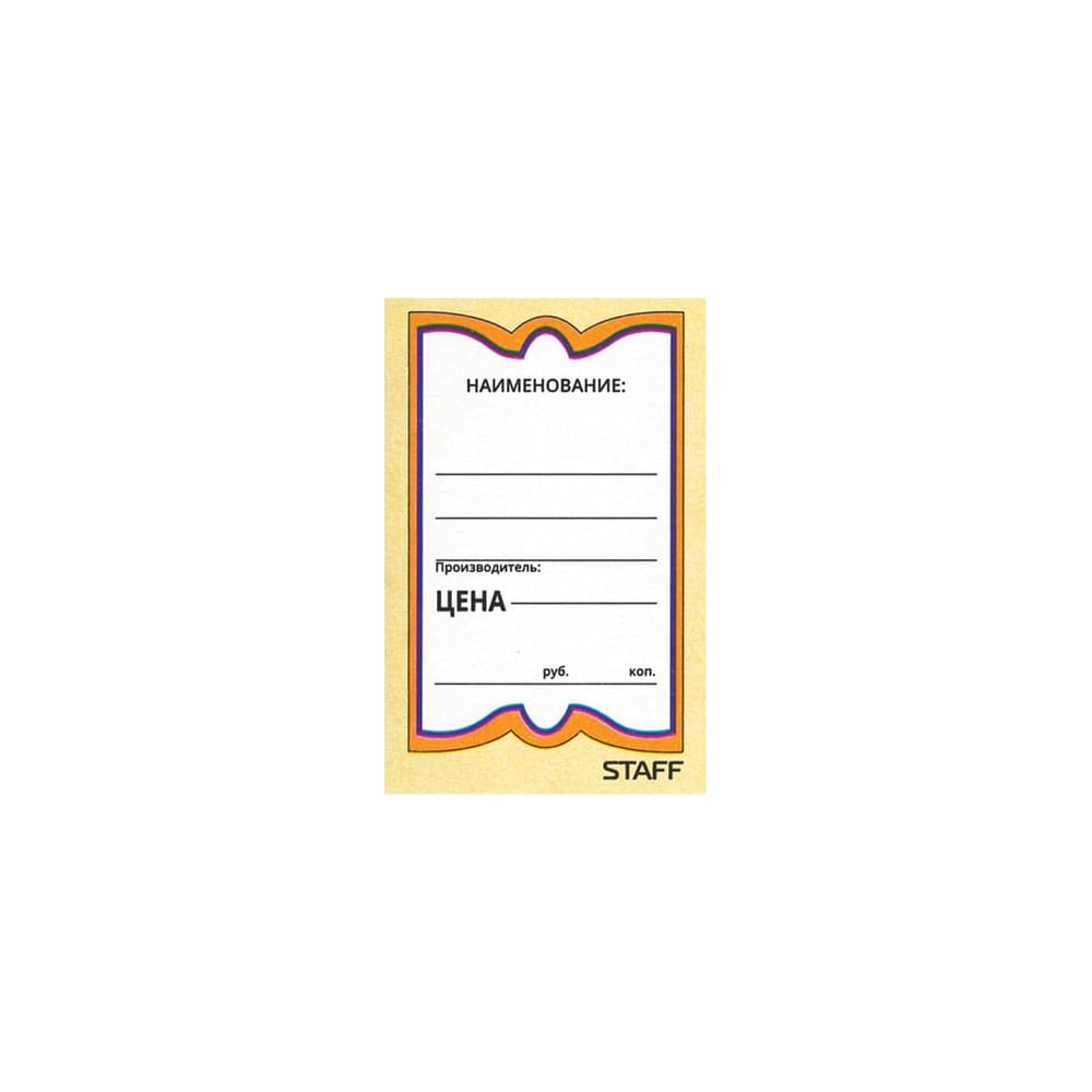 Картонные ценники STAFF наиболее оптимальны для магазинов, торгующих продуктами питания, поскольку картон сохраняет форму при изменении влажности и температуры. Удобные поля позволяют нанести информацию о фирме, наименовании и цене.Выполнены из картона плотностью 200 г/м2. Информация на этикетку наносится вручную. Ширина этикетки составляет 36 мм, высота - 56 мм.