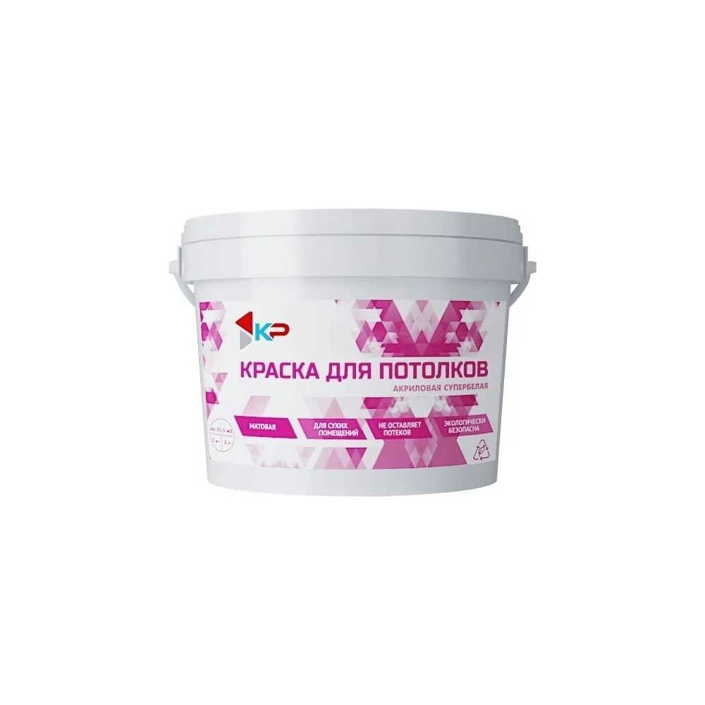 Краска супербелая для потолков быстросохнущая, акриловая, матовое покрытие КР 3 кг 4300009159 презназначена для окраски потолков в сухих помещениях по поверхностям из бетона, газобетона, гипсовых и ДСП плит, а также по деревянным, оштукатуренным или оклеенным стеклообоями поверхностям. Применение: перед применением краску следует перемешать и при необходимости разбавить водой не более 5% от массы краски. Окрашиваемую поверхность предварительно обработать грунтовкой. Краску наносить на чистую, сухую поверхность в один-два слоя при температуре выше +5°С кистью, валиком или распылителем. По окончании работ инструменты промыть водой. Расход на один слой, г/м²: 120 - 150 в зависимости от структуры поверхности. Рекомендуется двукратное нанесение краски с промежуточной сушкой 1 час.
