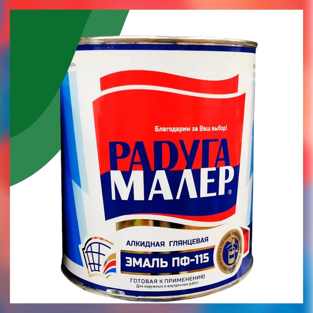Краска быстросохнущая, атмосферостойкая Радугамалер ГОСТ ПФ-115 изумрудная 1,9 кг 4650001272232 предназначена для окраски металлических, деревянных, бетонных, оштукатуренных и других поверхностей, подвергающихся атмосферным воздействиям, а также для отделочных работ внутри помещений. Степень блеска: Глянцевая. Расход: На однослойное покрытие 150-180 г/м2. Разбавитель: Сольвент, уайт-спирит, скипидар. Или их смесью не более 5% от массы эмали. Способ нанесения: Перед применением эмаль тщательно размешать. Эмаль наносят краскораспылителем, валиком или кистью на сухую, предварительно очищенную от пыли, жировых или других загрязнений, ржавчины, окалины поверхность. Время высыхания: Каждого слоя эмали при температуре (20±2)°C - 24 часа.