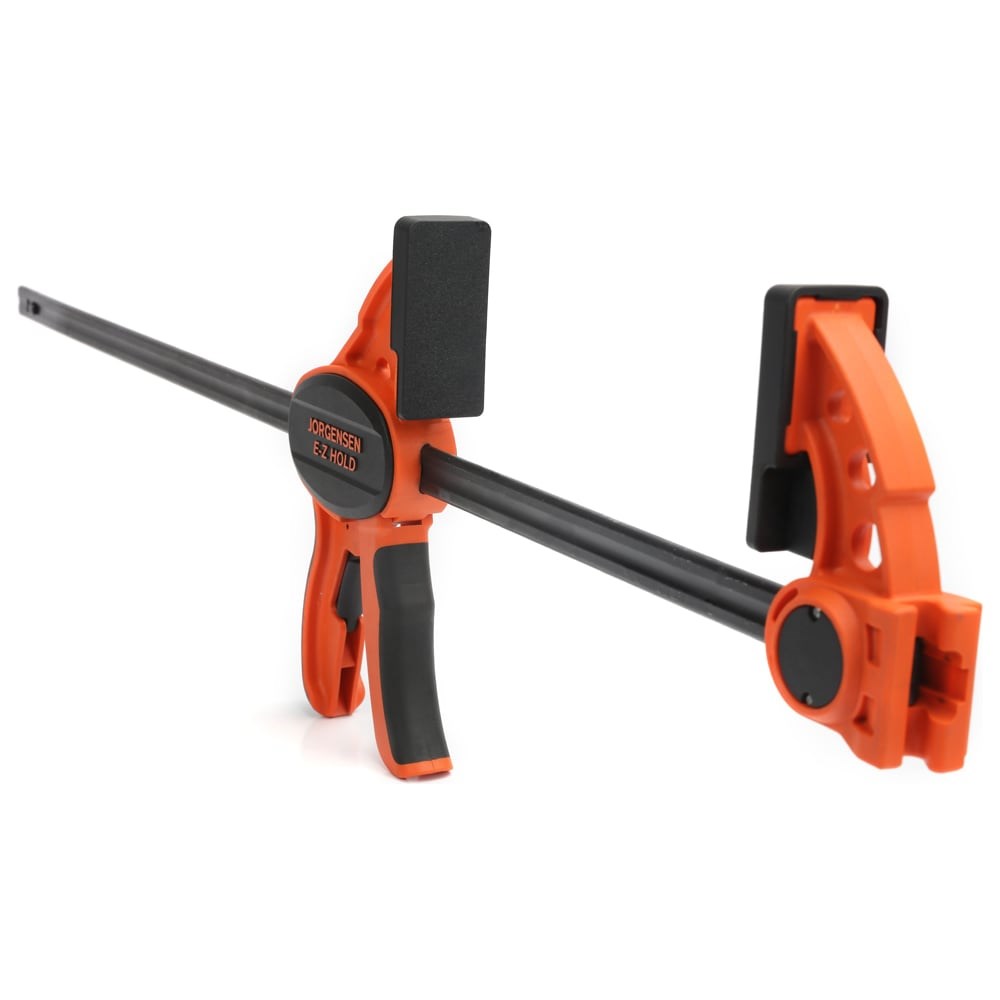 Быстрозажимная струбцина идеально подходит для средних нагрузок в деревообработке, хобби, ремесленных и модельных проектах. Ее также можно преобразовать в распорный зажим. Особенностями инструмента являются простой и удобный зажим одной рукой, раскрываемость губок с защитными накладками 76 сантиметров, удобная контурная рукоятка и быстроразъемный рычаг.