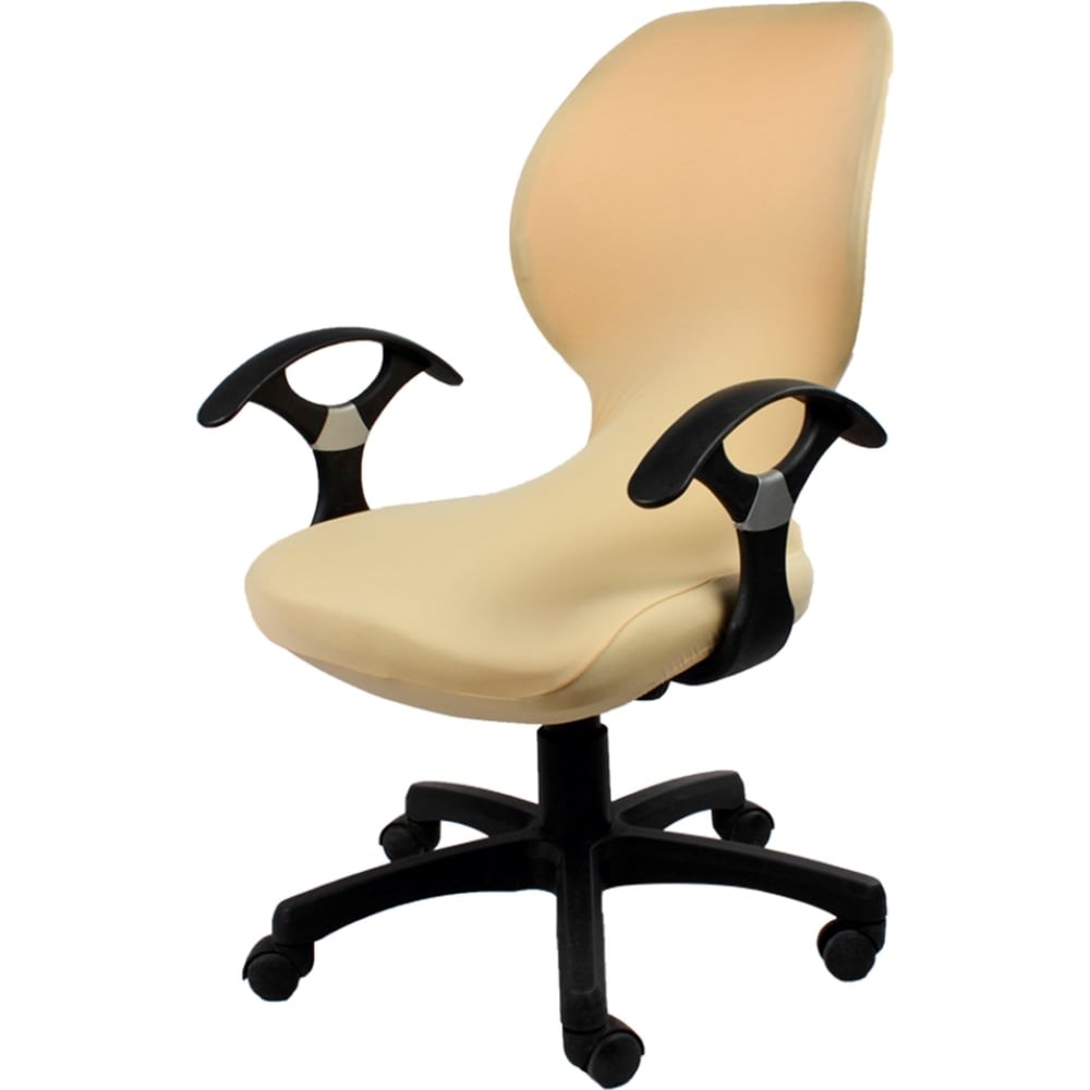 Чехол на мебель ГЕЛЕОС 722 для компьютерного кресла, стула, кремовый ГЧ00722 защищает от пыли, шерсти и пятен. Благодаря эластичности легко натягивается и хорошо облегает кресло. За счет вшитой резинки надежно фиксируется. Чехол можно стирать в стиральной машине, поэтому он прослужит долгое время.