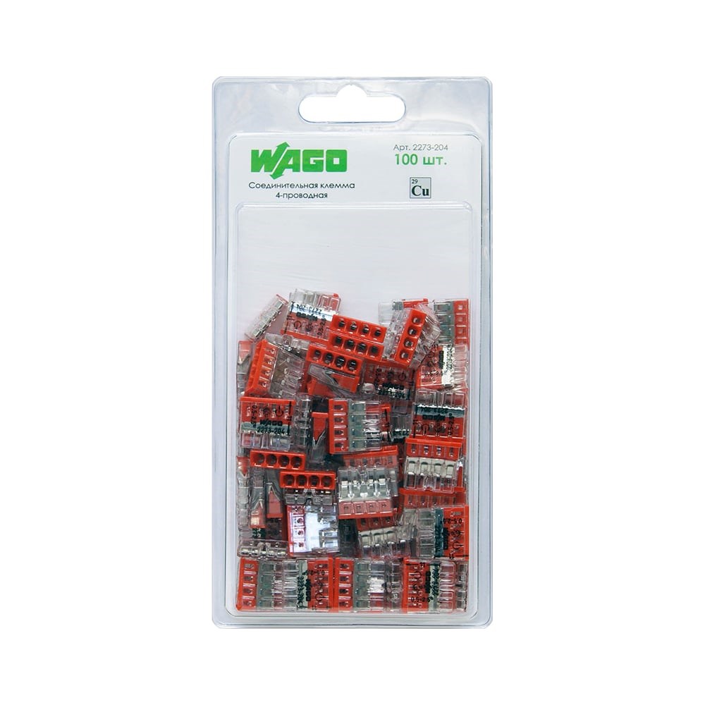 Клемма WAGO 2273-204 100 шт. 2667 предназначена для соединения медных одножильных проводников. Компактные размеры колодки позволяют использовать в условиях ограниченного пространства. Прозрачный корпус позволяет визуально контролировать правильность положения проводника и длину снятия изоляции. Проводящая часть соединителя изготовлена из меди.