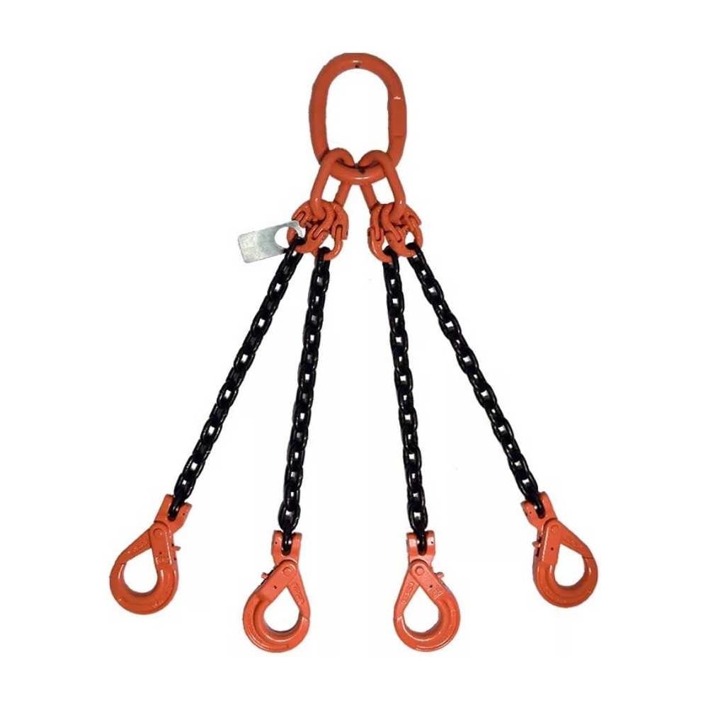 Четырехветвевые цепные стропы представляют собой устройство, состоящее из четырех цепей высокого класса прочности, одним концом закрепленных на соединительном звене и оснащенных крюками на свободных концах. Для устройства расчета грузоподъемности этого учитывают размеры и форму крюков и звеньев цепей, из которых состоит строп. Иногда црехветвевой строп обозначают как «паук цепной», также он соответствует марке «строп 4сц».