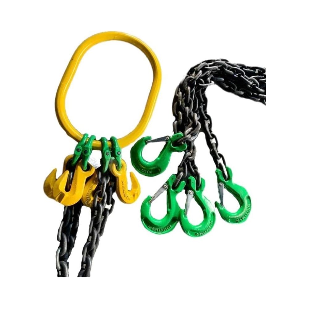 Четырехветвевые цепные стропы представляют собой устройство, состоящее из четырех цепей высокого класса прочности, одним концом закрепленных на соединительном звене и оснащенных крюками на свободных концах. Для устройства расчета грузоподъемности этого учитывают размеры и форму крюков и звеньев цепей, из которых состоит строп. Иногда црехветвевой строп обозначают как «паук цепной», также он соответствует марке «строп 4сц».