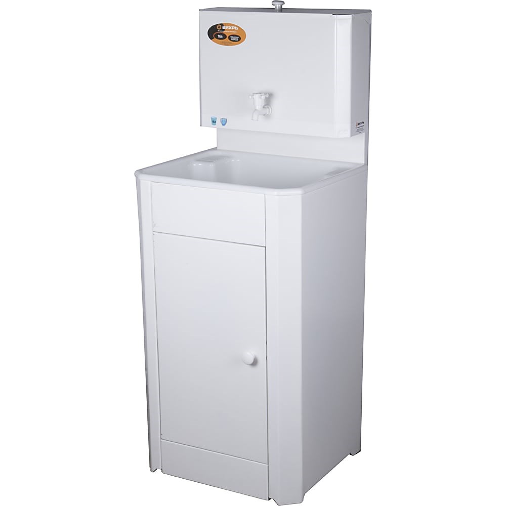 Дачный умывальник с резервуаром для воды – удачное решение для загородного дома. Данная модель оптимальна для установки как внутри помещения, так и снаружи. Это практичная альтернатива умывальнику, подключенному к центральному водопроводу. Умывальник «Комфорт» Вихрь можно установить на даче, в гараже или мастерской. Благодаря глубокой раковине он подходит для мытья посуды.Корпус и кран, регулирующий подачу воды, дачного умывальника изготовлены из качественного пластика белого цвета. Емкость бака составляет 16 л. Данная модель умывальника не имеет функции подогрева и регулировки температуры.Составная конструкция дачного умывальника включает трубу, скрывающую способ слива воды. Внутри тумбы можно установить ведро или другую отливную тару, а также можно подключить водоотвод в канализацию.