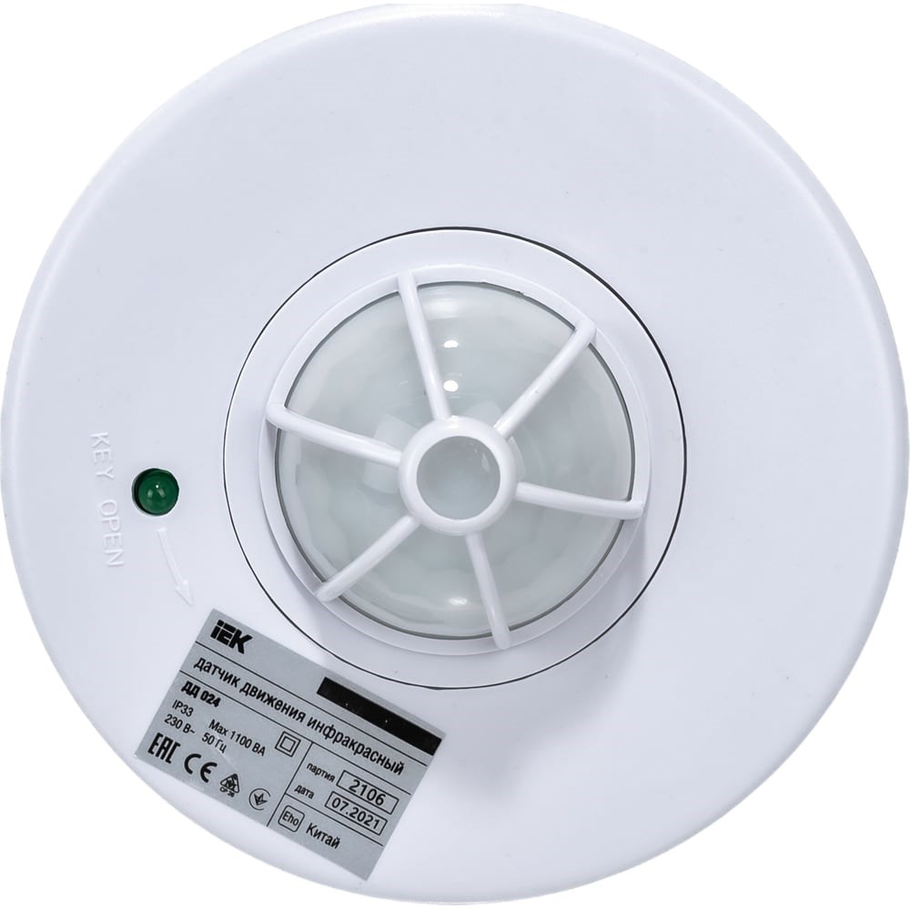 Детектор движения IEK ДД 024 1100Вт, угол. обз. 360град., IP33, бел. LDD11-024-1100-001предназначен для подачи нагрузки при обнаружении движения.Широко используется совместно с автоматическими системами освещения и безопасности.Угол обзора 360° и дальность действия 6метров создают обширный диапазон обнаружения.Корпус данной модели изготовлен из поликарбоната, который не поддерживает горение.