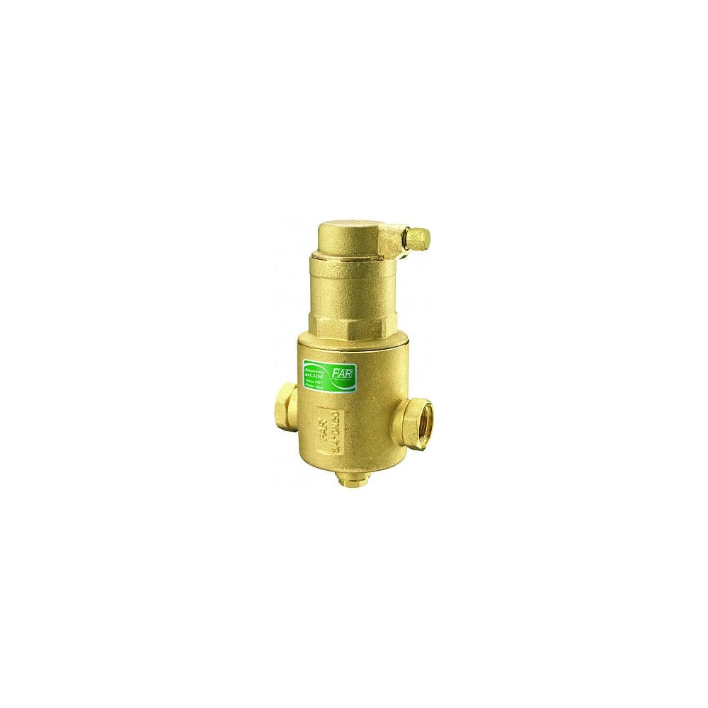 Деаэратор FAR 1" FA 2250 1 позволяет избавить контуры отопления от воздушных пузырей. Устройство отличается простотой в монтаже и использовании.В деаэраторе размещён специально разработанный и запатентованный фильтрующий картридж. Вертикальные составляющие картриджа, изготовленные из нейлона имеют многогранную поверхность, что увеличивает площадь соприкосновения стенок и пузырьков, турбулизирует поток и уменьшает скорость. В результате увеличивается эффективность отделения и отвода газов. Благодаря особенной конструкции картриджа отделение пузырьков происходит в результате столкновения со стержнями, а не в результате фильтрации. Поэтому гидравлическое сопротивление деаэратора FAR значительно меньше, чем у аналогов, работающих на картриджах с разными размерами ячеек фильтрующей сетки. В нижней части корпуса можно установить сливной кран.