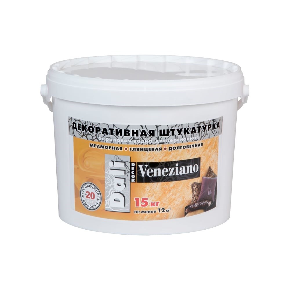 ШТУКАТУРКА ДЕКОР DALI-DECOR ВЕНЕЦИАНСКАЯ 15 КГ 31066 предназначена для защитно-декоративной обработки стен, потолков и различных элементов интерьера в отапливаемых и неотапливаемых жилых и общественных помещениях, в том числе с повышенной влажностью воздуха и интенсивной эксплуатационной нагрузкой. Область применения: Применяется внутри помещений, по тщательно выровненным минеральным (бетон, кирпич, гипс, цемент, гипсокартон, шпатлевка, штукатурка и т.д.) и другим (ДВП, ДСП, МДФ и т.д.) поверхностям. Класс пожарной опасности КМ 1. Разрешена для обработки путей эвакуации. Разрешена к применению в детских, дошкольных, лечебных и общеобразовательных учреждениях.