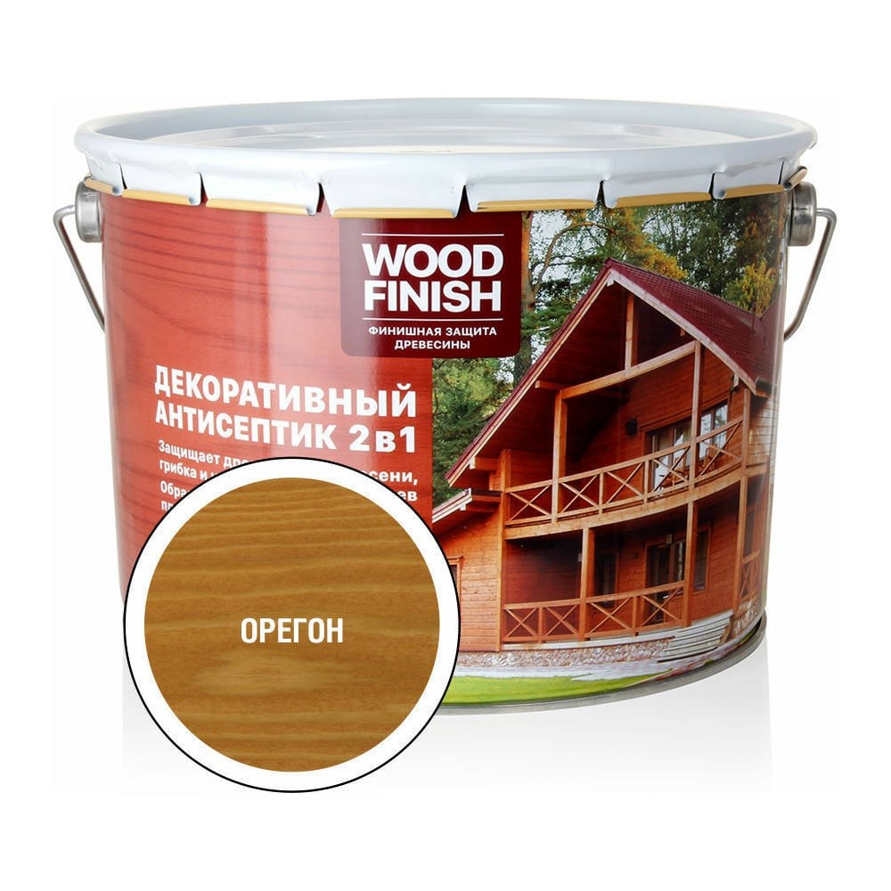 Декоративный антисептик ЗАО Декарт WOOD FINISH для дерева, орегон, 9 л 28484 предназначен для финишной отделки поверхности пиленой и строганой древесины снаружи и внутри помещений. Образует полуматовое покрытие. Обеспечивает защиту древесины до 5 лет. Расход Пиленая древесина: 1 литр на 5-8 кв.м. Строганая древесина: 1 литр на 10-13 кв.м. Точный расход зависит от свойств окрашиваемой поверхности и цвета антисептика. Подготовка поверхности Поверхность должна быть прочной, сухой, очищенной от смол и других загрязнений. Старые непрочные покрытия удалить. Способ нанесения Перед нанесением тщательно перемешать, допускается разбавление уайт-спиритом. Наносить кистью, валиком или краскопультом не менее, чем в 2 слоя. Рекомендуется предварительное грунтование бесцветным составом, разбавленным на 15-20% уайт-спиритом. Температура при проведении работ не должна опускаться ниже +5°С. При температуре +20°С и нормальной влажности воздуха время высыхания от пыли 3-4 часа. Следующий слой можно наносить через 24 часа. Сразу после работы инструменты очистить уайт-спиритом.