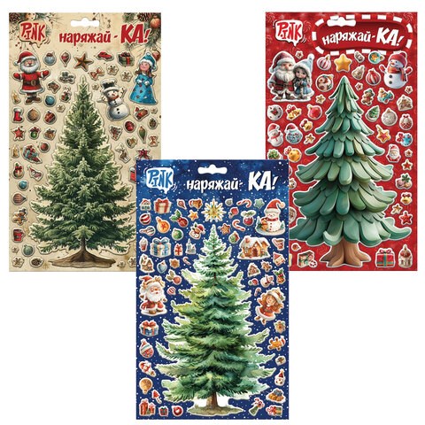 Декоративный набор наклеек "Ёлочка-Наряжай-Ка!" АССОРТИ, 17х29 см, PINK