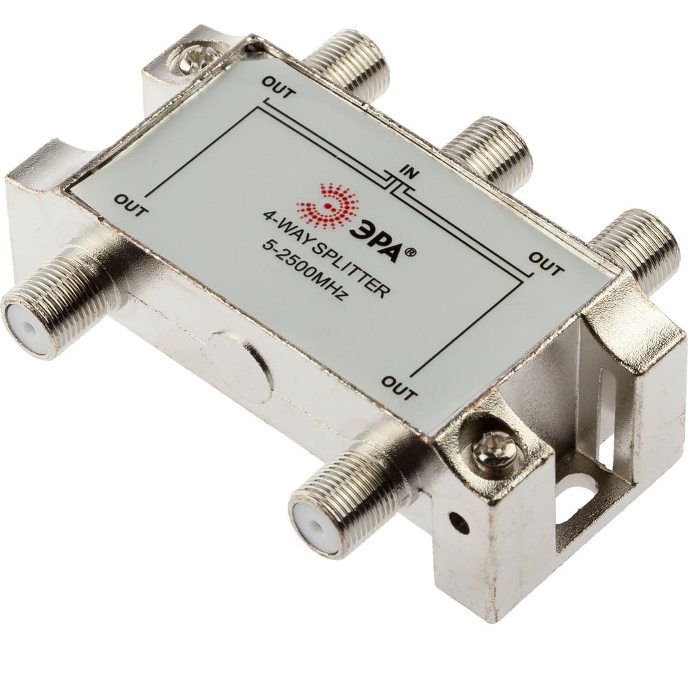 Дополнительные технические характеристики делителя ЭРА ТВ DFSAT04 4 ответвления под F разъем, 5-2500 МГц Б0048328: Количество входов - 1. Количество выходов - 4. Способ подключения - F-разъем.