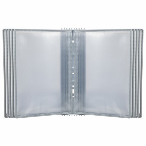 10 двусторонних панелей позволяют одновременно разместить до 20 листов формата А4. Опора и рамка демосистемы изготовлены из прочного АБС-пластика. Прозрачный карман из ПВХ обладает антибликовыми свойствами и надежно защищает документы от внешних воздействий.