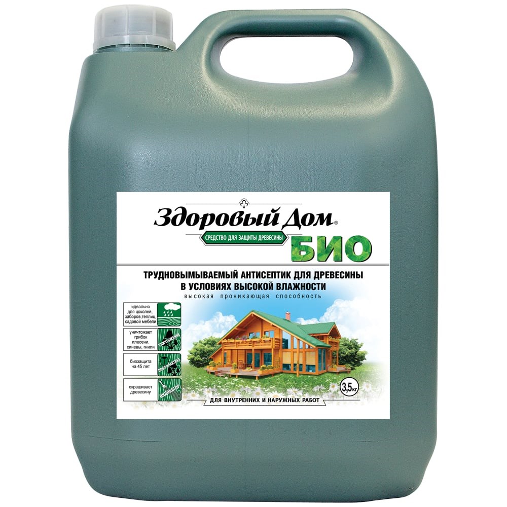 Деревозащитное средство Здоровый Дом БИО желто-зеленый 3,5 кг 90002075248 образует слой, который препятствует гниению, образованию грибка и плесени, а также древесной синевы. Надежно защищает дерево от биопоражений. Препарат продлевает срок службы древесины в 2 - 5 раз.