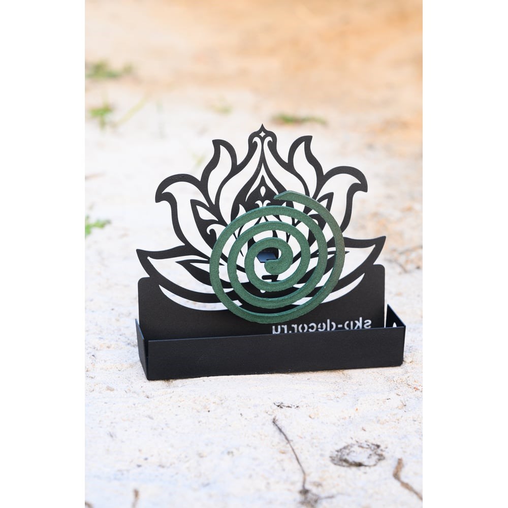 Подставка для благовоний и спирали - это красивый декоративный элемент, который позволяет устанавливать спирали от мошек и комаров. Держатель изготавливается из металла 1 мм и покрывается методом порошковой покраски для долговечности и защиты от сколов. Спираль легко подвешивается на крючок, а лоток помогает улавливать золу и поддерживать чистоту и безопасность. Благодаря универсальному дизайну держатель используется как внутри помещения, так и на улице. Подставка подходит для спиралей всех производителей. Также подставка используется для ароматических палочек и благовоний. Стильный дизайн подойдет для массажных салонов и парикмахерских. Спирали от комаров и палочки в комплект не входят.