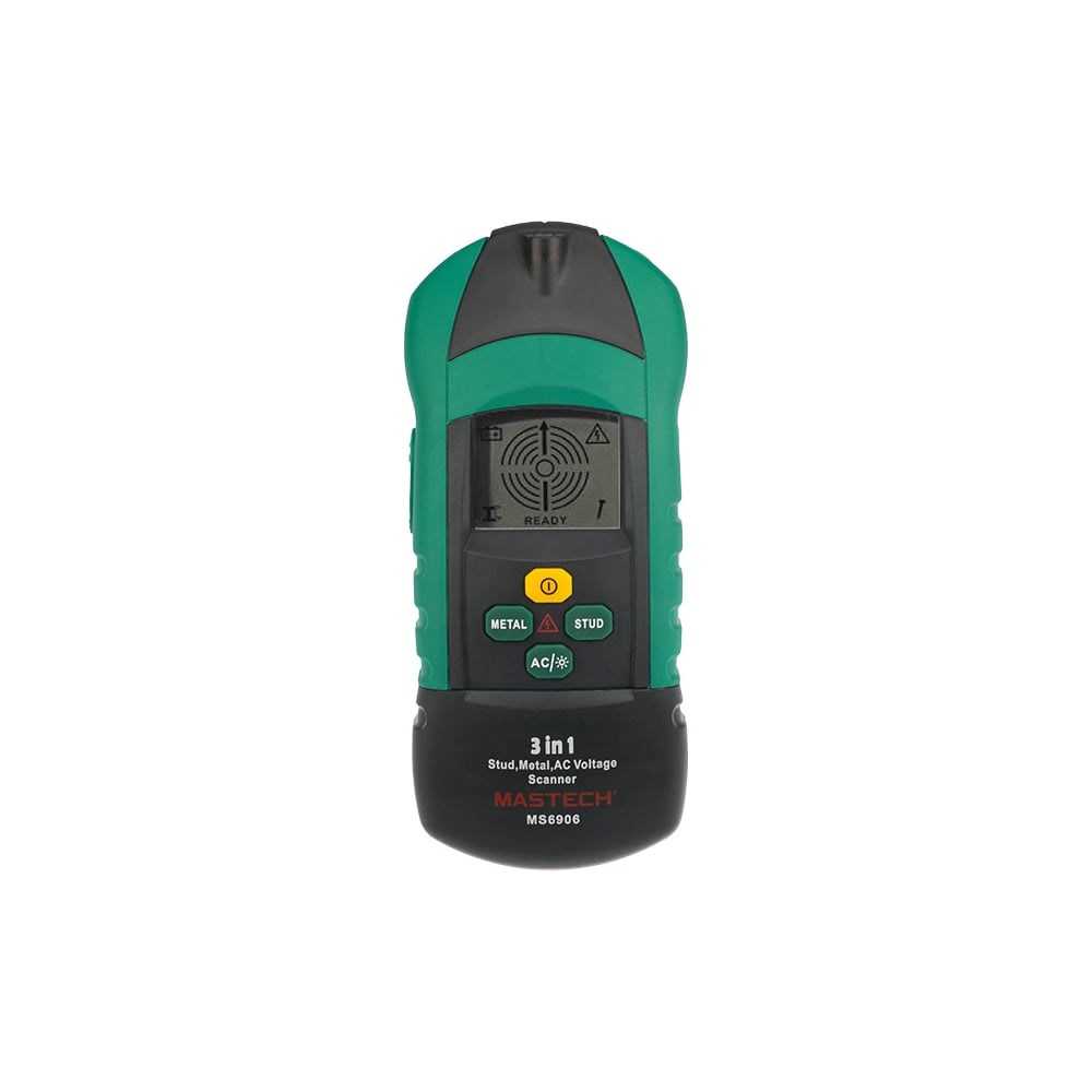 MASTECH MS 6906 — это многофункциональный прибор, включающий в себя большой набор возможностей. Предназначен для поиска металла, переменного напряжения, а также скрытых конструкций. С его помощью вы сможете обнаружить винты, гвозди, саморезы, шпильки, иголки и другие металлические предметы на глубине до 30 мм, металлические трубы на глубине до 60 мм и напряжение на глубине до 75 мм. Результаты поиска отражаются на дисплее прибора и обозначаются с помощью звукового сигнала. Прибор окажется незаменим при ремонтных работах, на строительных площадках и даже дома, в быту. С его помощью вы сможете обнаружить даже неисправную проводку и при ремонте вам не придется ломать всю стену. Вы сможете найти затерявшуюся иголку или гвоздь, которые могли провалиться в щели между досками, и многое другое. Прибор изготовлен из высококачественных материалов и имеют эргономичный дизайн. Калибровка и тестирование приборов произведены под контролем компании СДС.