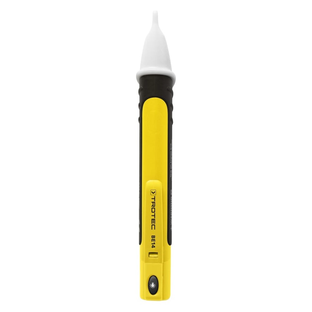 Детектор напряжения TROTEC BE14 - это бесконтактный тестер фазы, позволяющий, не только быстро определять обрыв линии в кабеле, но также обнаруживать все токоведущие детали, такие как розетки, переключатели или кабельные линии. Благодаря емкостному методу обнаружение напряжения может быть выполнено бесконтактно. Как только в зоне локализации измерительного наконечника появляется напряжение, начинает мигать красный светодиод, сопровождаемый дополнительной звуковой сигнализацией. Прибор оснащен зажимом для кармана и встроенным светодиодным фонариком для оптимального освещения темных участков измерения.