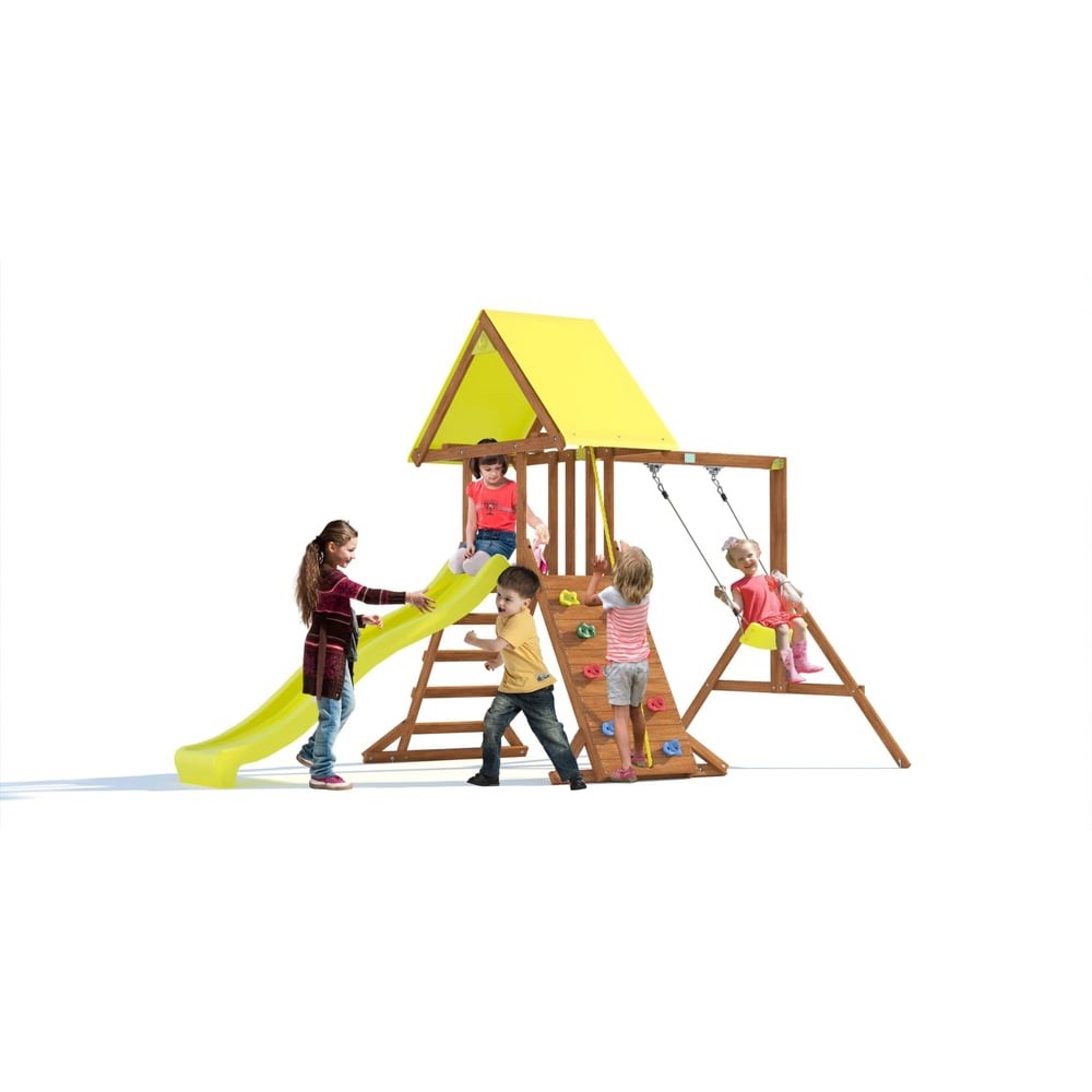 Детский игровой комплекс MoyDvor ПИРАТ отлично подходит для организации детского досуга на свежем воздухе. Компактная и в то же время функциональная детская площадка позволит одновременно играть вместе целой группе детей. Благодаря продуманной конструкции игрового комплекса с широкой лестницей с поручнями, ограждением форта с тентовой крышей, защищающей от солнца и небольших осадков, малыши могут активно проводить время в полной безопасности. Детская площадка изготовлена из цельной древесины сосны, тщательно просушенной и обработанной пропиткой против гниения и насекомых. Для удобства и безопасности детей устанавливайте площадку на ровную поверхность, чтобы с каждой стороны было по 1.8 метра свободного пространства. К земле детская площадка крепится с помощью анкеров, которые идут в комплекте. Дополнительные характеристики: Высота платформы форта: 1120 мм; Размер платформы форта: 640х1350 мм; Длина ската горки: 2200 мм.