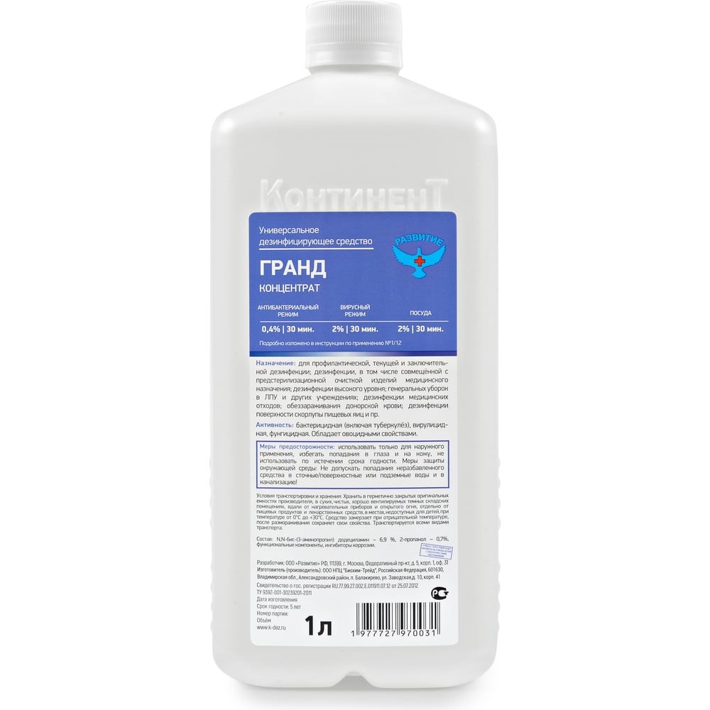 Дезинфицирующее средство ООО Континент Гранд