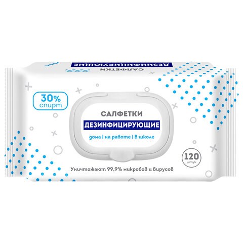 Дезинфицирующие салфетки спиртовые 120 штук АВАНГАРД, крышка-клапан, 72114