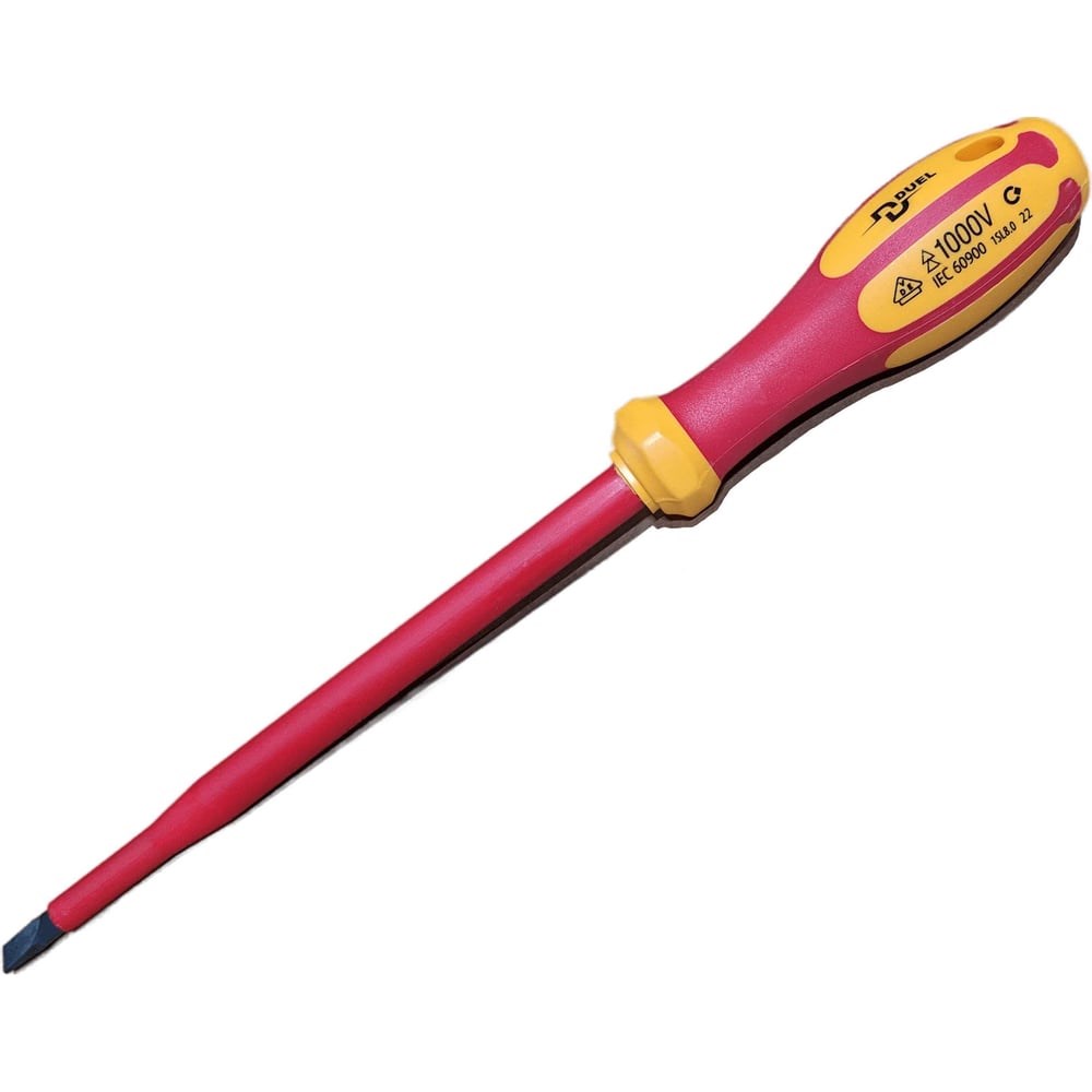 Диэлектрическая отвёртка соответствует стандарту 1000V IEC-60900. Изготовлена из сверхпрочной стали, что делает инструмент надежным и долговечным. Наконечник покрыт чёрной оксидной плёнкой. Эргономичная рукоять служит для комфортной эксплуатации. Внимание! Инструмент может отличаться своими характеристиками от ознакомительного изображения модели.